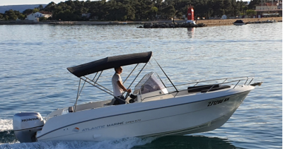 Atlantic Marine 670 je moderní motorový člun vyrobený v roce 2021 a pojme až 10 osob. Na lodi najdete stříšku Bimini, koupací žebřík, USB sloty, GPS, hloubkový sirén, sprchu, rádio s Bluetooth&AUX konektivitou a další. Atlantic Marine 670 je poháněn přívěsným motorem Honda o výkonu 150 HP, který nabízí skvělou rovnováhu mezi výkonem a spotřebou paliva.