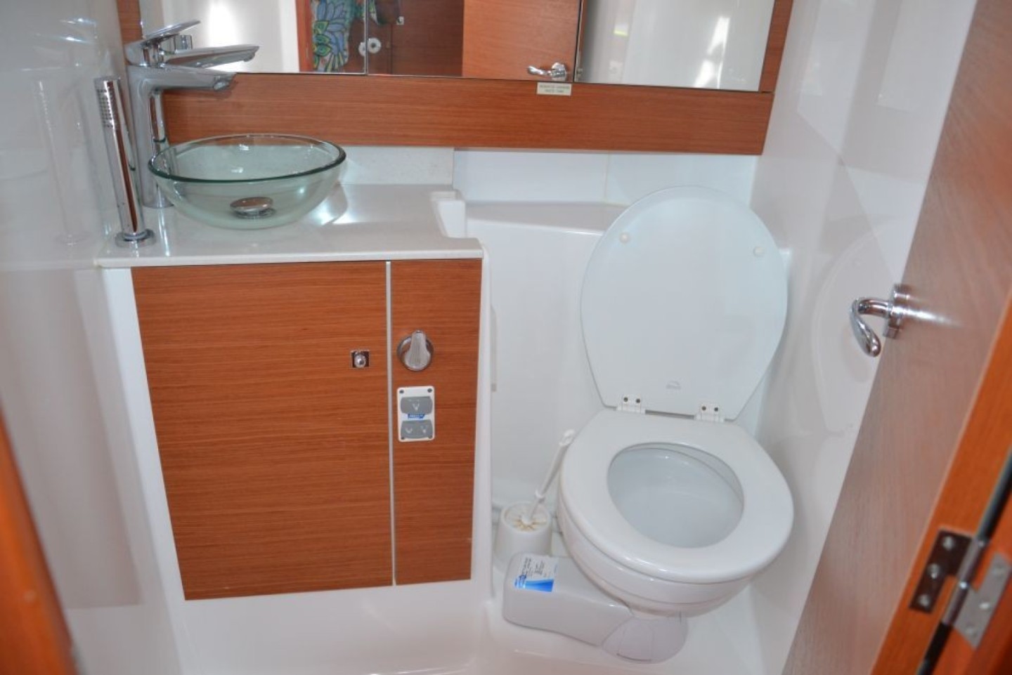 This Dufour 412 Grand Large is equipped with 2 heads with a shower.